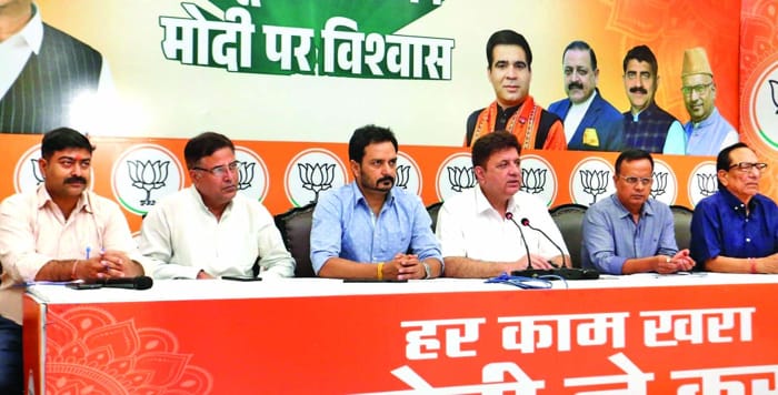 JAMMU: On the 100th day of Modi-3 Government, the J&K BJP Chief Spokesperson, Sunil Sethi, on Tuesday said that the works done in 100 days of Modi-3 Government are far more revolutionary than the works done in the 70 years of Cong rule. This was stated by Sethi, while addressing a press conference at BJP media center, here today. BJP Spokespersons, Abhijeet Jasrotia, YV Sharma, Dr Tahir Chowdhary, GL Raina (former MLC) BJP media Incharge, Dr Pardeep Mahotra, were also present in the press conference.