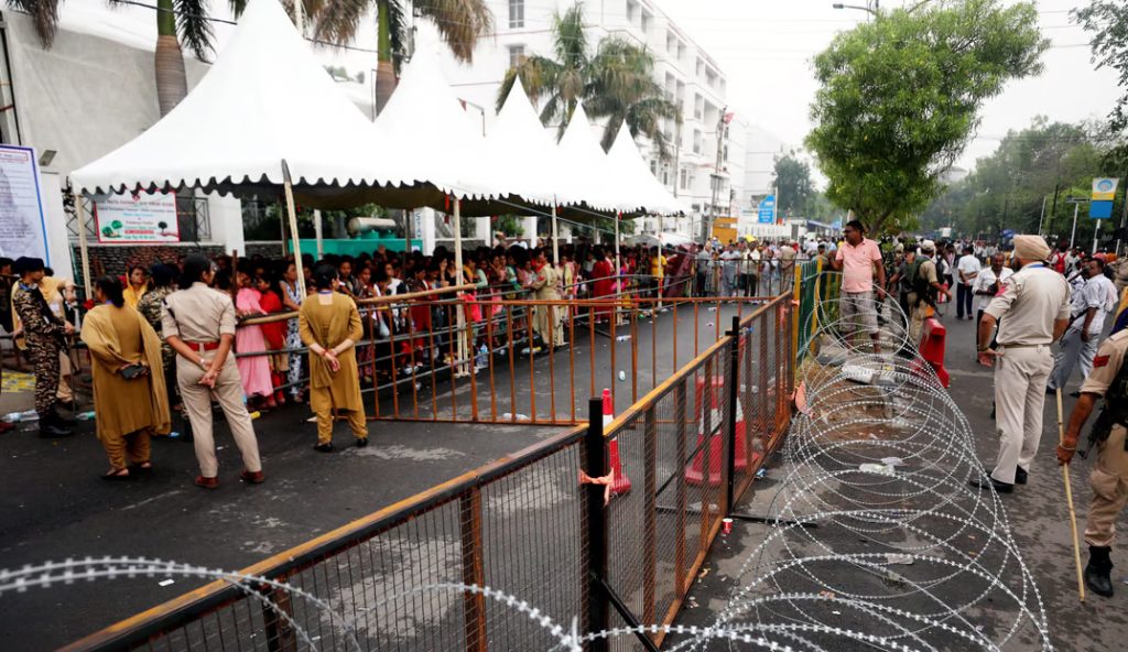 The third batch, including 1,141 women, left in 319 vehicles between 3:50 am and 4:45 am amid tight security.