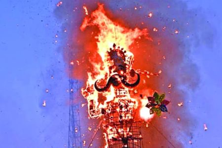 Huge effigies of Ravana, his brother Kumbhkarna and brother Meghnath (also known as Inderjeet), symbolising the evils, whose end by Lord Rama and his ‘sena’ led by Veer Hanuman and Sughreev is celebrated every year as Dussehra, went up in flames as at the stroke in the presence of hundreds of people at Parade Ground in the heart of City.
