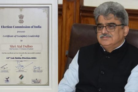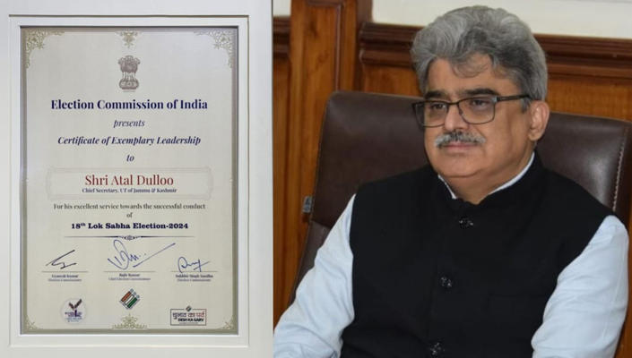 JAMMU: The Election Commission of India (ECI) had recognized the services of Chief Secretary, Atal Dulloo, for successful holding of elections for the 18th Lok Sabha in the UT of J&K.