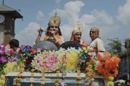 SRINAGAR: Kashmiri Pandits celebrated ‘Janmashtami” birthday of Lord Krishna ,with religious fervour in Srinagar on Thursday and took a Shobha Yatra. Men and women were seen dancing and showering flowers .