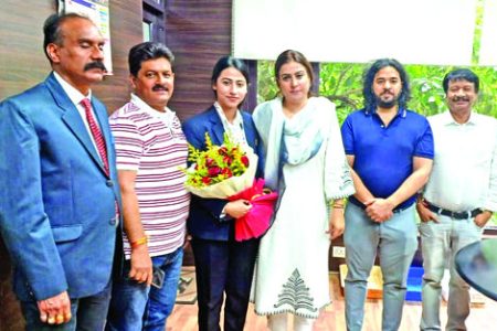 JAMMU: Secretary J&K Sports Council (JKSC), Nuzhat Gul on Wednesday felicitated, Ruhi Rajput, who was part of the Indian women team which secured third place in the just concluded VI World Cup Rollball Championship at Pune in Maharashtra.