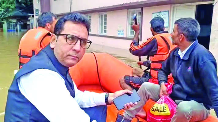 SRINAGAR: As heavy rains inundated Jammu and Kashmir’s Anantnag district court complex, Principal District and Sessions Judge Tahir Khurshid Raina on Wednesday reached the premises in a boat to ensure the safety of judicial documents.
