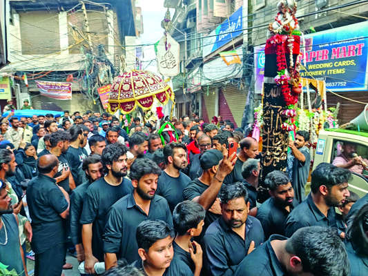 Muslim brethren taking out Muharram procession in Jammu on Sunday.