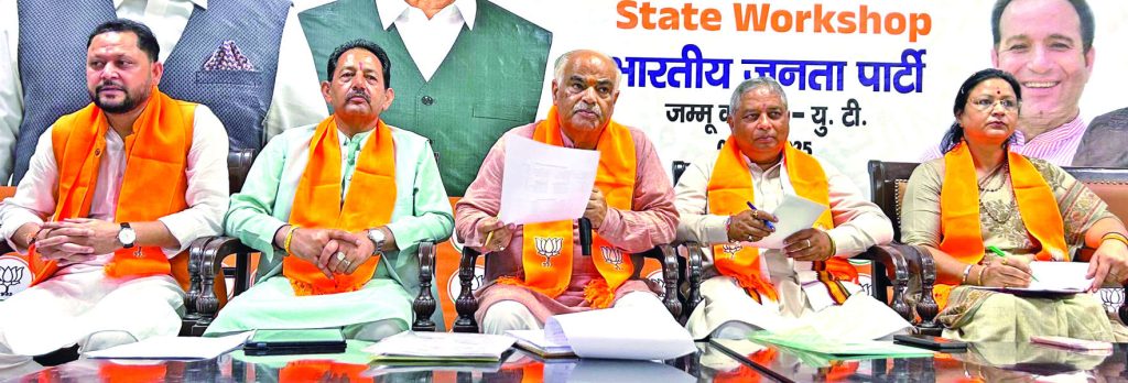 JAMMU: J&K BJP President Sat Sharma and Party General Secretary (Organization) Ashok Koul, along with General Secretaries Sanjita Dogra, Baldev Singh Billawaria, and Gopal Mahajan, addressed a state-level workshop on “Seva Pakhwara” at the party headquarters, Trikuta Nagar, Jammu.