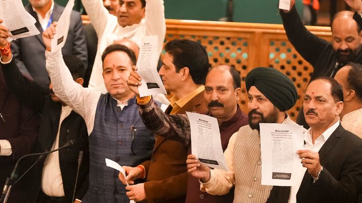 As the ruckus continued, BJP MLA from Kishtwar, Shagun Parihar, tried to enter the well of the House, but was stopped by female watch and ward staff.