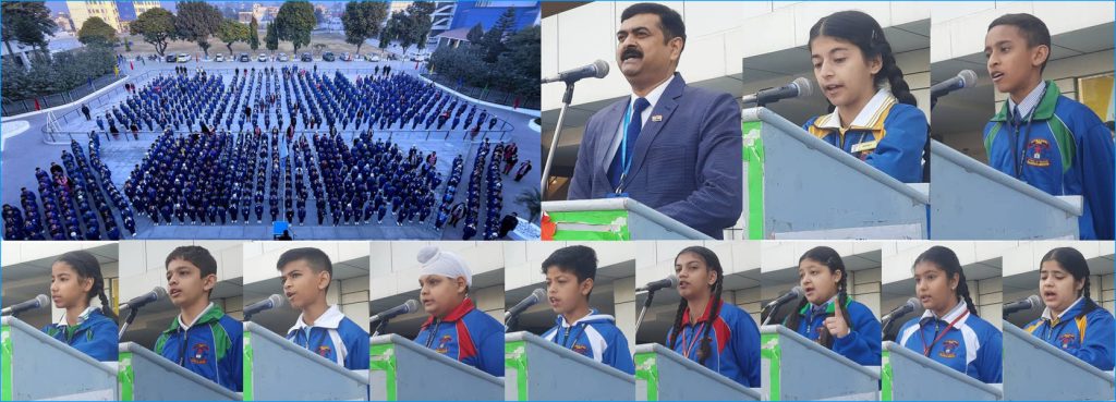 JAMMU: Quoting George Bernard Shaw, “Some men see things as they are and say, ‘Why?’ I dream things that never were and say, ‘Why not?'”, Shivanya of Grade VII Maple conducted the morning assembly on the theme “Thinking Out of the Box” along with her classmates at JK Public School, Kunjwani.