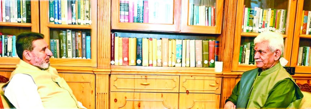 SRINAGAR: Syed Mohammad Altaf Bukhari, President, J&K Apni Party called on Lieutenant Governor Manoj Sinha on Monday. They discussed the current political and security scenario in Jammu and Kashmir, while Apni Party President Bukhari brought a range of pressing public issues to the notice of LG Sinha.