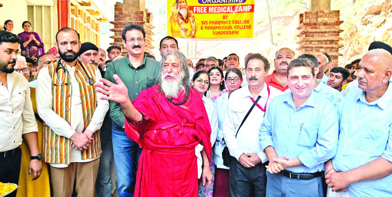 Shri 1008 Swami Vishwatamanand Ji Maharaj speaking at cardiac awareness cum health check-up camp being organized by HoD Cardiology GMCH Jammu Dr. Sushil Sharma.