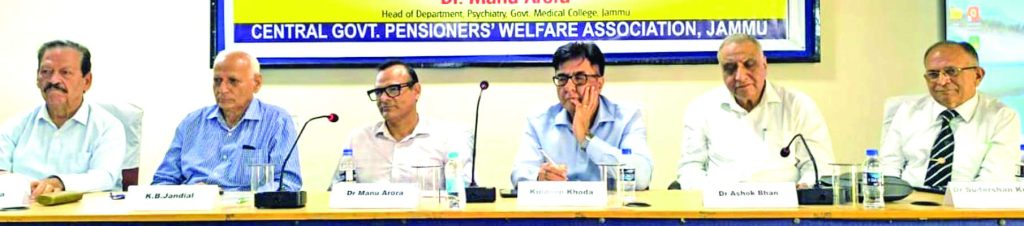 JAMMU: At a well-attended function organised by the Central Govt Pensioners’ Welfare Association, Jammu (CGPWA) on Tuesday to celebrate the 35th Senior Citizen’s Day, Dr. Manu Arora, Head of the Psychiatry, Govt Medical College Jammu unfolded a strategy to prevent mental health issues among elders.