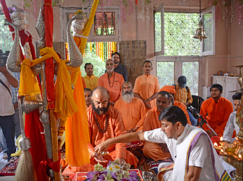 Amid chants of Vedic hymns, Mahant Deependra Giri, the mace’s custodian, led a group of sadhus in performing the puja, they said.