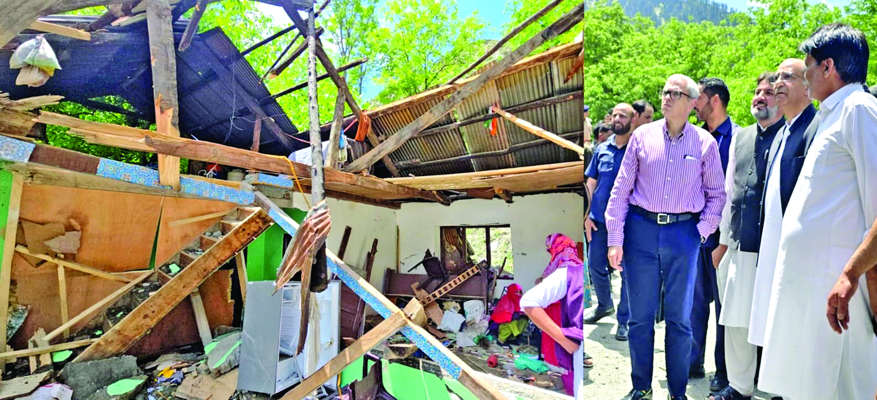 CM Omar Abdullah during visit to Tangdhar to assess situation on Tuesday.
