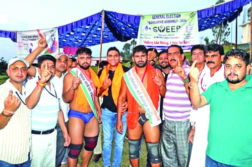 A vibrant and ardent event that is traditional sports- Dangal (wrestling) was organized today at village Kirmoo, Ramnagar, by SDM Ramnagar in collaboration with the Dangal Committee Badoi Ramnagar. The event, organized as part of the SVEEP campaign, aimed to promote voter awareness and encourage maximum participation in the upcoming legislative assembly elections scheduled for October 1, 2024.