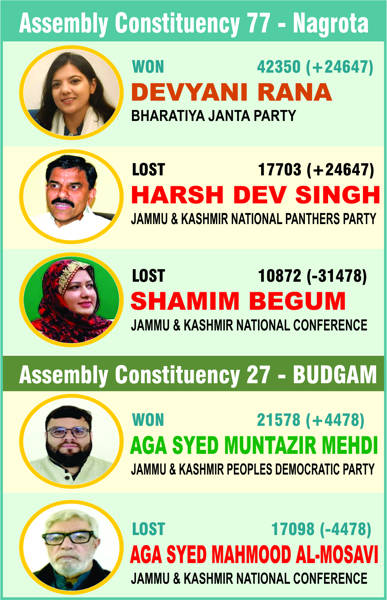 JAMMU: The BJP retained the Nagrota assembly constituency after its 30-year-old candidate Devyani Rana won with a lead of 24,647 votes, carrying forward the legacy of her late father and senior party leader Devender Singh Rana.