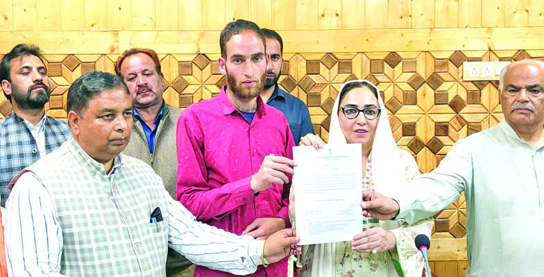 SRINAGAR: Dr Syed Darakhshan Andrabi, Chairperson of Jammu & Kashmir Waqf Board on Thursday handed over the appointment letter on compassionate grounds to Nazakat Shah, brother of Shaheed Syed Adil Hussain who lost his life in Pahalgam terror attack while saving the people from attackers.