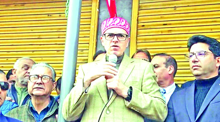 In his address, Abdullah framed the November 11 bypoll as a contest against a unified opposition trying to defeat Agha Mehmood, the NC candidate.