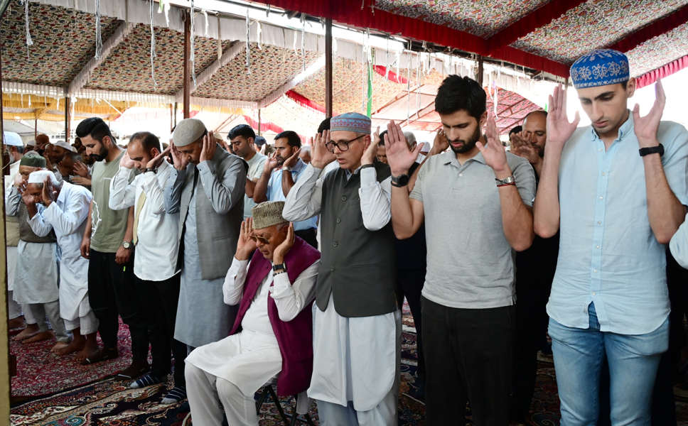 An official spokesperson added, the Chief Minister joined thousands of devotees in offering Jumma (Friday) prayers at the revered Hazratbal Shrine on the occasion of the Friday following of Milad-un-Nabi (SAW).
