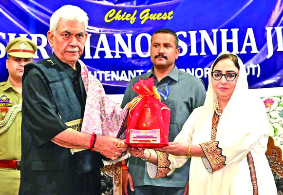 Chairperson JKWB Dr Syed Darakhshan Andrabi honouring Lt Governor Manoj Sinha.
