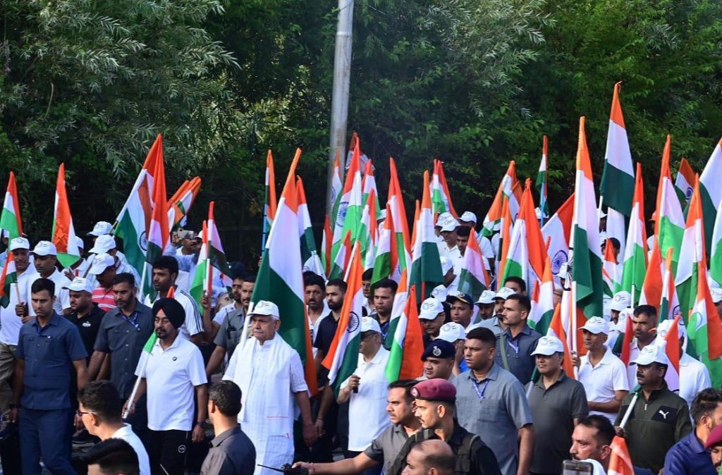 “May our beloved and victorious Tricolor fly high in the world,” the Lt Governor said after flagging-off the Tiranga Yatra in Srinagar and joined the public representatives, officials and thousands of citizens in the walkathon from International Convention Centre to Botanical Garden.