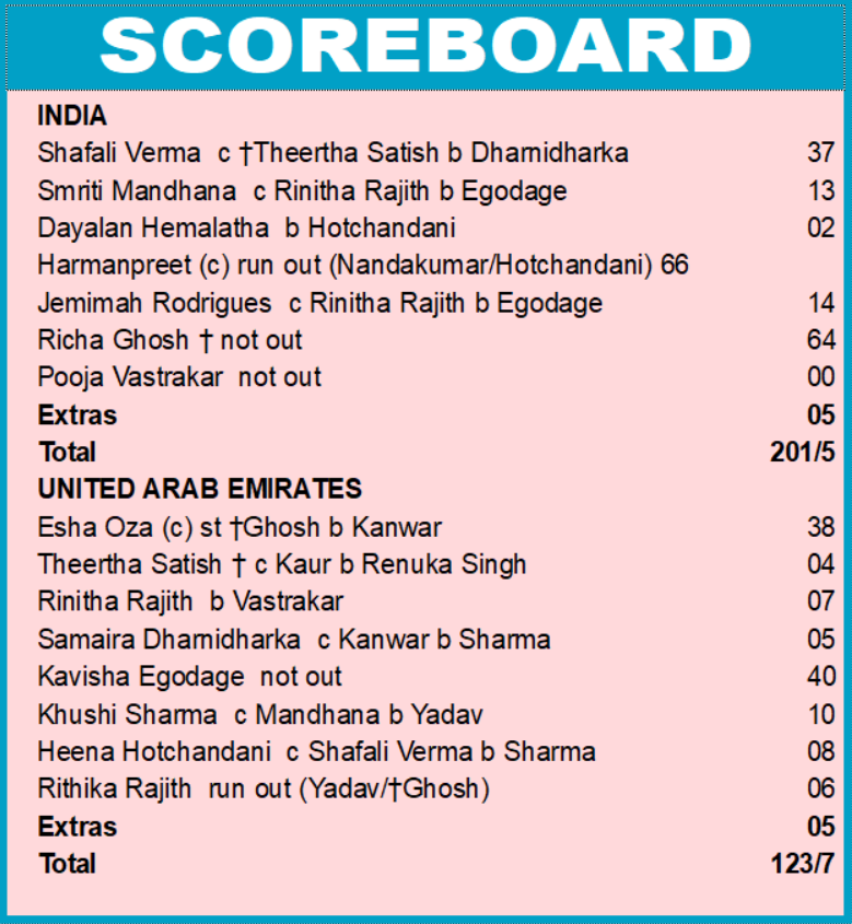 Harmanpreet, Richa Ghosh guide India to78-run win over UAE in Women’s Asia Cup