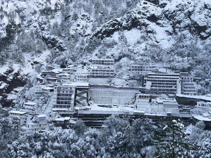 The hills surrounding the shrine were covered by snow, providing a spectacular view to the devotees who walked from base camp Katra to the shrine, the officials said.
