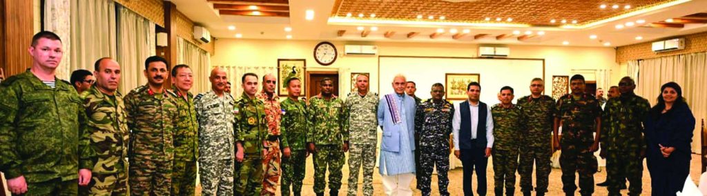 LG Manoj Sinha meeting delegation of Senior Officers from Indian Armed Forces, Civil Services and friendly foreign countries, currently attending the course at the National Defence College on Wednesday.