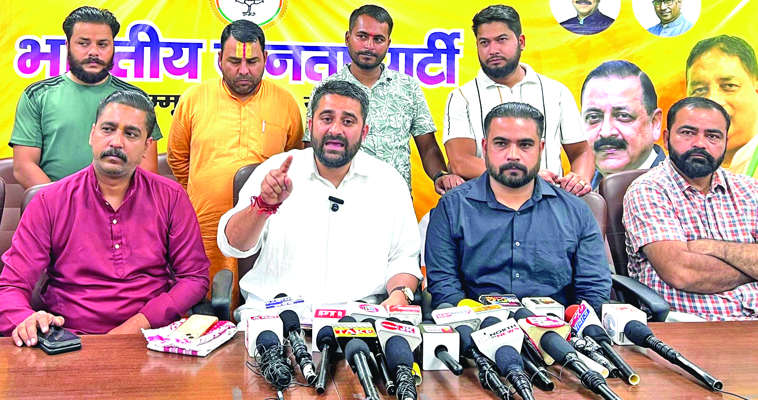 JAMMU: Bharatiya Janata Yuva Morcha (BJYM) held a press conference at party headquarters, Trikuta Nagar, in strong opposition to the Jammu and Kashmir Government’s controversial decision to include Urdu as a compulsory subject in the recently notified Naib Tehsildar recruitment 2025. During his address Arun Prabhat lambasted the current National Conference government for intentionally killing the spirit of equal opportunity and meritocracy. This biased decision reveals a mindset which for decades kept J&K’s issues burning, using the region selectively to further their narrative.