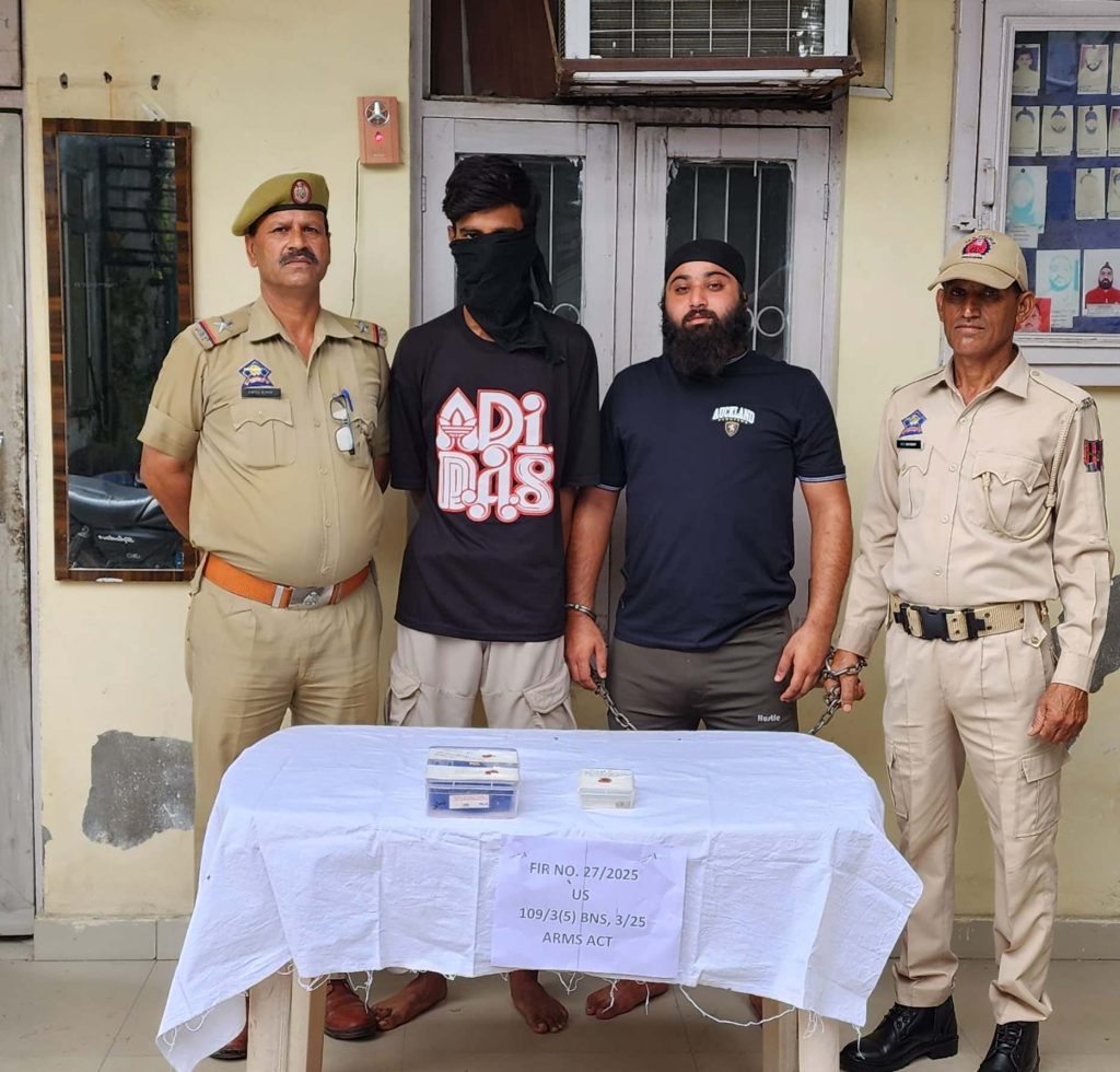 After sustained efforts by SI Ajesh Singh Jamwal under the leadership of SHO Police Station Miran Sahib Inspector Jai Pal Sharma, and under the supervision of SDPO R.S. Pura and SP Headquarters Jammu, two more gangsters were arrested. The arrested individuals include Balwinder Singh alias Goru Jatt, son of Swarn Singh, resident of Ranjri, Vijaypur, Samba and one pistol along with live cartridges were recovered.