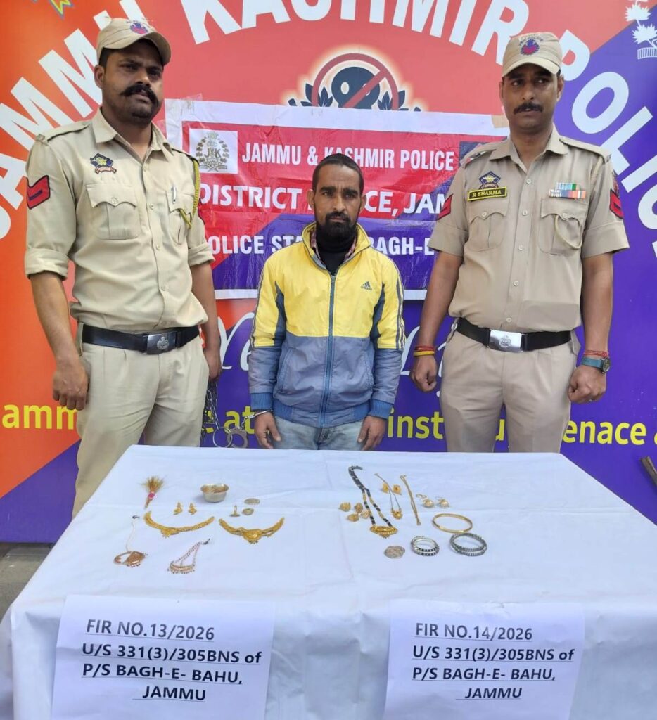 Jammu: Jammu Police, South Zone, successfully solved two theft cases reported on consecutive days at PS Bagh-e-Bahu. The accused were arrested, and stolen gold and silver ornaments worth Rs. 26,75,000 were recovered. The operation was conducted under the overall supervision of SSP Jammu, with close guidance from SP City South, SDPO City East, and the SHO of PS Bagh-e-Bahu, reflecting effective coordination, vigilance, and strategic policing.