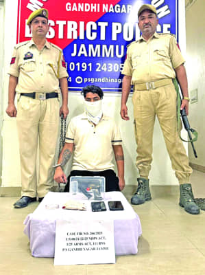 A case FIR No. 206/2025 under sections 8/21/22/25 NDPS Act, 3/25 Arms Act & 111 BNS has been registered at Police Station Gandhi Nagar Jammu and the accused person has been taken into custody for further investigation.