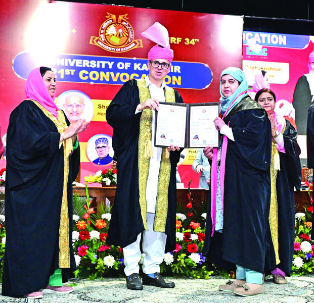 Calling the convocation a day of “succession,” the Chief Minister told the graduating students that they were succeeding the generations who kept the flame of knowledge alive through difficult times and were now the torch-bearers of the future. Quoting Kashmiri mystic poetess Lalleshwari (Lall Ded), he urged students to embark on the journey of self-realisation even as their formal education concluded.