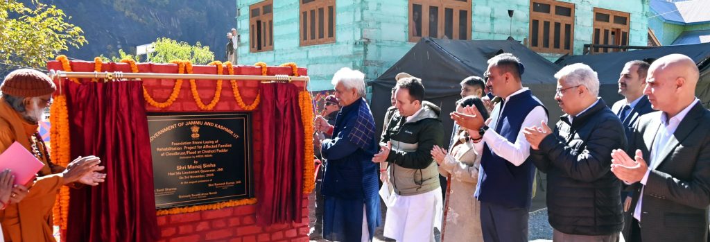 JAMMU: Jammu and Kashmir Lieutenant Governor Manoj Sinha on Monday laid the foundation stone for the construction of ‘smart houses’ for cloudburst-hit families in Chisoti village of Kishtwar district.