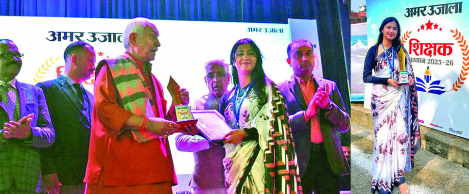 JAMMU: J.K. Public School, Kunjwani takes immense pride in celebrating the commendable achievement of Mehak Mengi, who was conferred with the Best Teacher Award at the prestigious Amar Ujala Shikshak Samaroh.
