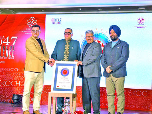 NEW DELHI: The Jammu and Kashmir Micro, Small and Medium Enterprises (JKMSME) Health Clinic, a flagship initiative of the Industries and Commerce Department, J&K, has been conferred with the prestigious SKOCH Gold Award in recognition of its impactful implementation and transformative contribution to the MSME sector at 104th SKOCH Summit held in New Delhi.