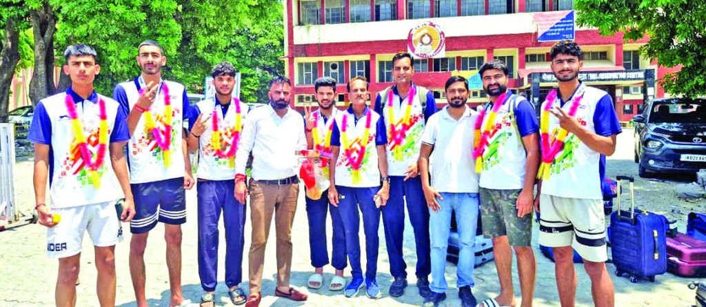 JAMMU: The Jammu and Kashmir Union Territory (JKUT) boys’ volleyball team was accorded a grand welcome upon their arrival at Jammu Railway Station on Sunday, following their historic gold medal win at the 7th Khelo India Youth Games (KIYG) held in Patna, Bihar.