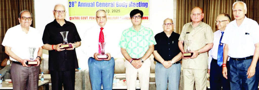 JAMMU: At the 28th Annual General Body Meeting (AGM) held on Monday , the Central Govt Pensioners’ Welfare Association, Jammu (CGPWA) unanimously re-elected Kuldeep Khoda as its President and K B Jandial as General Secretary for the next three years. Dr Sudarshan Kumar was unanimously re-elected as its Vice President, B. B. Magotra as its Secretary and O P Sharma as Treasurer.