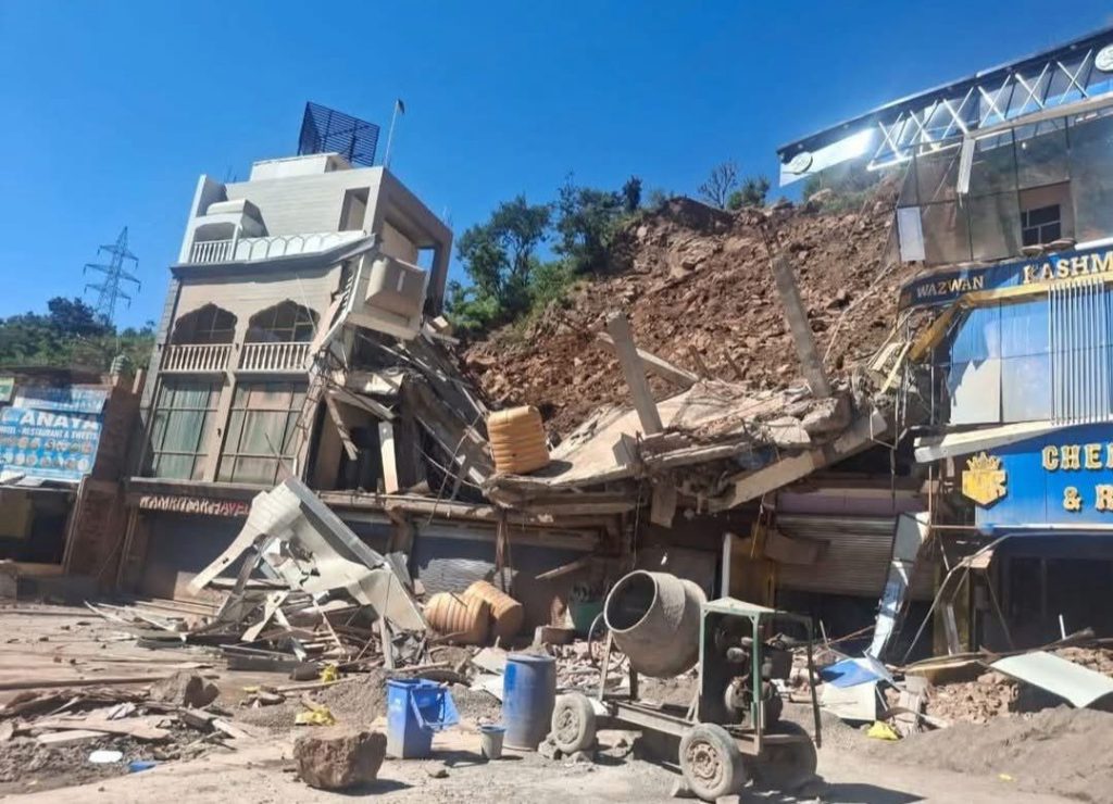 Landslide struck Narsoo market in Samroli area; several commercial structures damaged