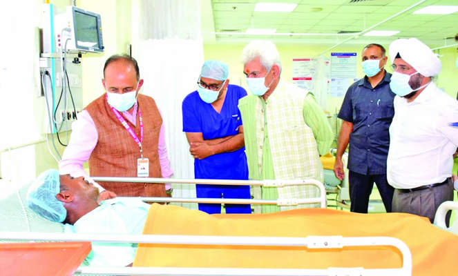 KATRA: Lieutenant Governor Manoj Sinha on Wednesday met the devotees injured in an unfortunate landslide incident near Ardhkuwari at Shri Mata Vaishno Devi Shrine who are undergoing treatment at Shri Mata Vaishno Devi Narayana Superspeciality Hospital, Katra and enquired about their health.