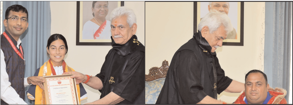 JAMMU: Lieutenant Governor Manoj Sinha on Saturday met and felicitated Paris 2024 Paralympics Bronze Medallists, Sheetal Devi and Rakesh Kumar, at Raj Bhawan. The Lt Governor congratulated the Para Archers from UT of J&K for their incredible performance at Paris 2024 Paralympics. Interacting with the Para Archers Sheetal Devi and Rakesh Kumar, the Lt Governor said that their hard work, dedication and remarkable achievements in International games have made the nation proud. “Your exceptional performance will inspire the young generation,” the Lt Governor said. The Lt Governor also felicitated the Archery Coach Abhilasha Chaudhary and extended his best wishes to the athletes and the coach for their future endeavours. Anshul Garg, Chief Executive Officer, SMVDSB and other senior officers of the Shrine Board were present on the occasion.