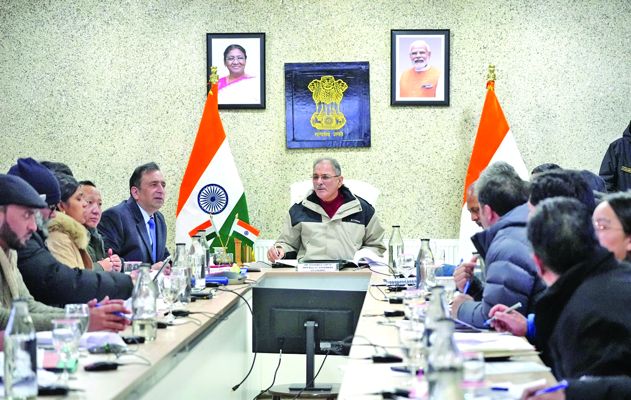 There was deliberation on extension of PMFBY and PMKSY to provide crop insurance to farmers against disasters, with corpus funds proposed for horticulture crop protection from untimely snowfall or rainfall. There were also discussions on recruitment drives for gazetted, UT, and district cadre posts, including feasibility of examination centres outside Ladakh for candidates’ convenience; awareness outreach for disability reservations, supported by organisations like PAGIR, alongside counselling for drug-affected youth through Health Department psychiatrists and activation of Drug Deaddiction Centres in Leh and Kargil by Social Welfare Department. Early notification of Development Authorities to enforce municipal laws against haphazard urban growth in Leh and Kargil, reservations for persons with disabilities, ex-servicemen, ex-Agniveer, and ex-SPOs in government jobs and prioritisation of renovation of heritage sites and monasteries by Tourism and Culture Department were also discussed in the meeting.