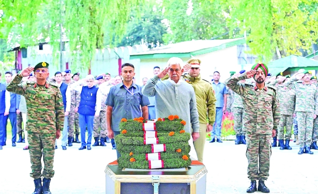 SRINAGAR: Lieutenant Governor Manoj Sinha on Wednesday laid wreath and paid homage to Rfn Hilal Ahmad Bhat, who laid down his life in the line of duty for the Nation.