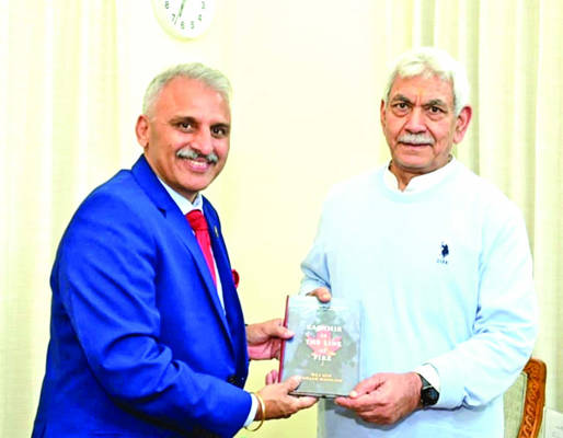JAMMU: Lieutenant Governor Manoj Sinha was on Tuesday presented with a book authored by Major General Ranjan Mahajan (Retd.). The title of the book is “Kashmir in the Line of Fire”.