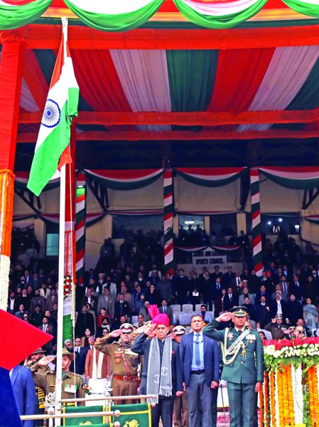 JAMMU: Lieutenant Governor Manoj Sinha unfurled the National Flag at the UT level function on the occasion of the 77th Republic Day on Monday, at MA Stadium.