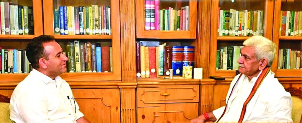 SRINAGAR: The Leader of Opposition in J&K Legislative Assembly, Sunil Sharma, on Wednesday called on Lieutenant Governor Manoj Sinha and discussed several important issues affecting the people of Jammu Kashmir in the wake of recent natural calamities.