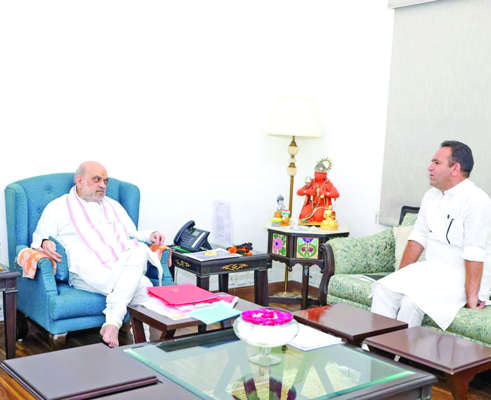 LOP Sunil Sharma meeting with Home Minister Amit Shah at New Delhi on Monday.