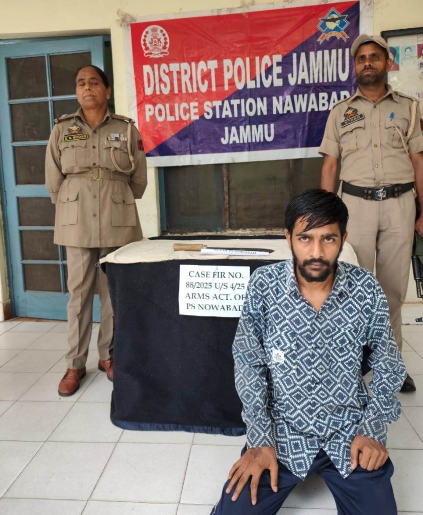 JAMMU: A man was arrested from a hotel with a sharp-edged weapon during a check in Jammu City on Wednesday, an officer said.