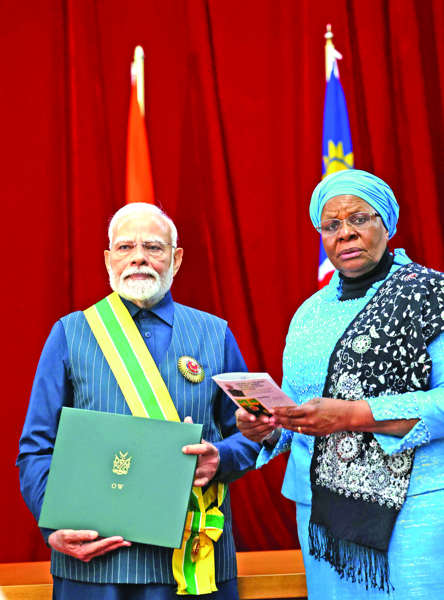 WINDHOEK: Prime Minister Narendra Modi was on Wednesday conferred with Namibia’s highest civilian award, ‘Order of the Most Ancient Welwitschia Mirabilis’.