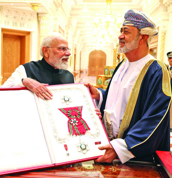 MUSCAT: Prime Minister Narendra Modi was on Thursday conferred with the Order of Oman, the Sultanate’s uniquely distinct civilian honour, by Sultan Haitham bin Tarik for his “exceptional contribution” to India-Oman ties and his “visionary leadership”.