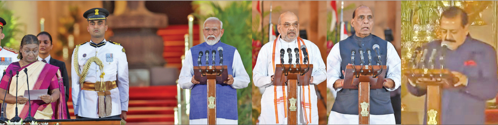 NEW DELHI: Narendra Modi was sworn-in as prime minister on Sunday for a record-equalling third term, heading a Cabinet that emphasised continuity and experience while also rewarding partners in the BJP-led National Democratic Alliance government.