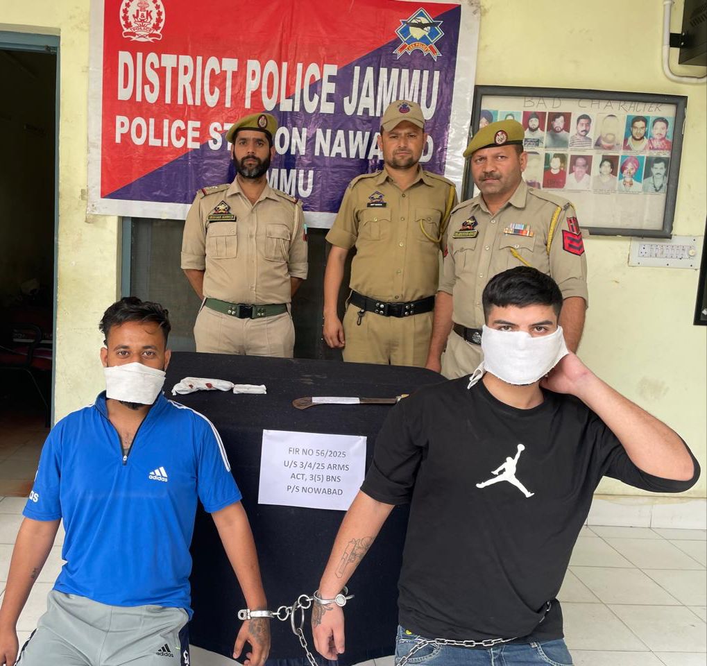 A police team during a routine checking intercepted a scooty on the Fourth Bridge, they said, adding that a pistol with a live round was allegedly recovered from Aniket Mottan alias Babblu of Bishnah, and a sharp-edged weapon was allegedly recovered from his associate Aniket Dutta of Bakshi Nagar, they said.